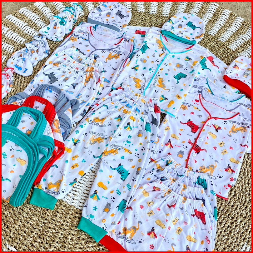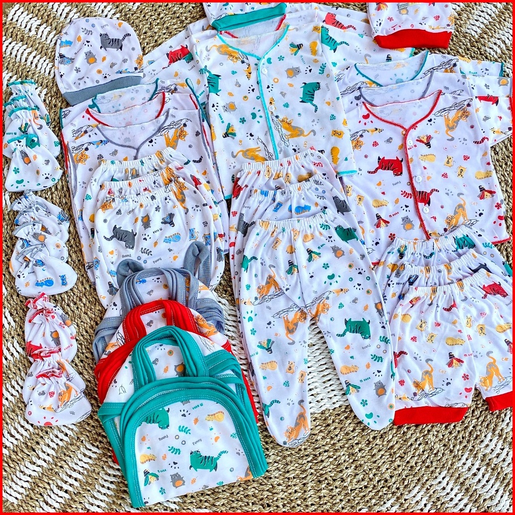 Annora - Isi 36 Pcs Paket Lengkap Lahiran Bayi Perlengkapan Baju Bayi Baru Lahir Seri Funny Cat