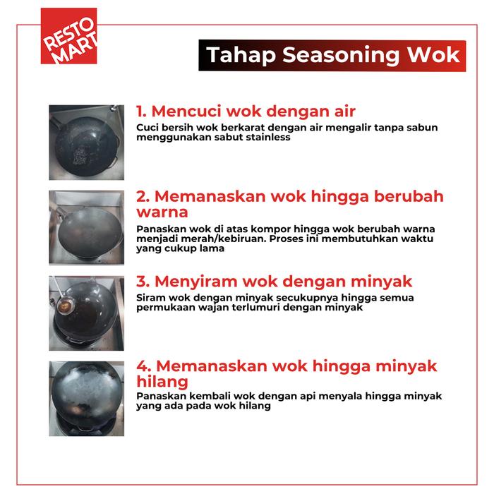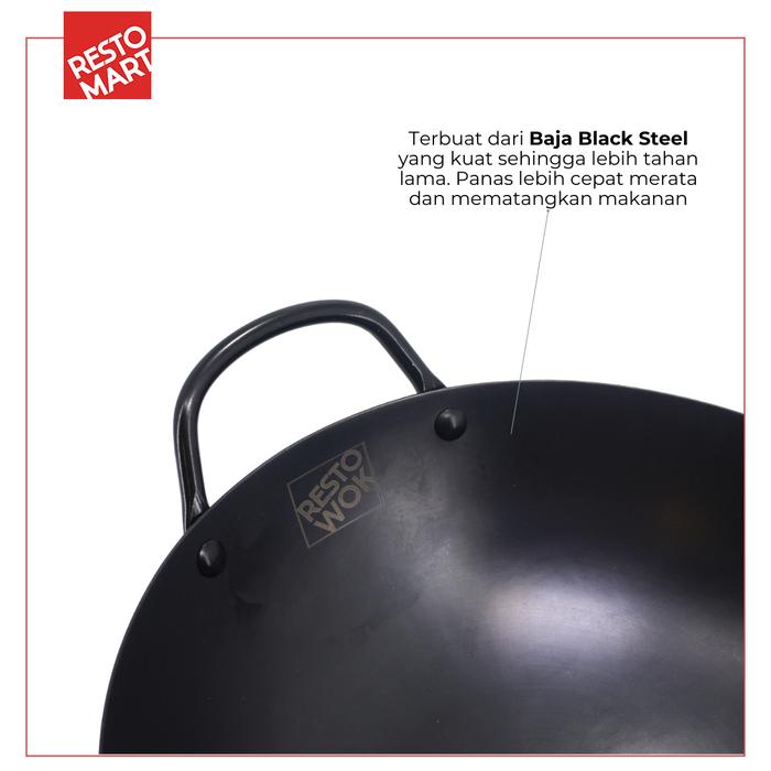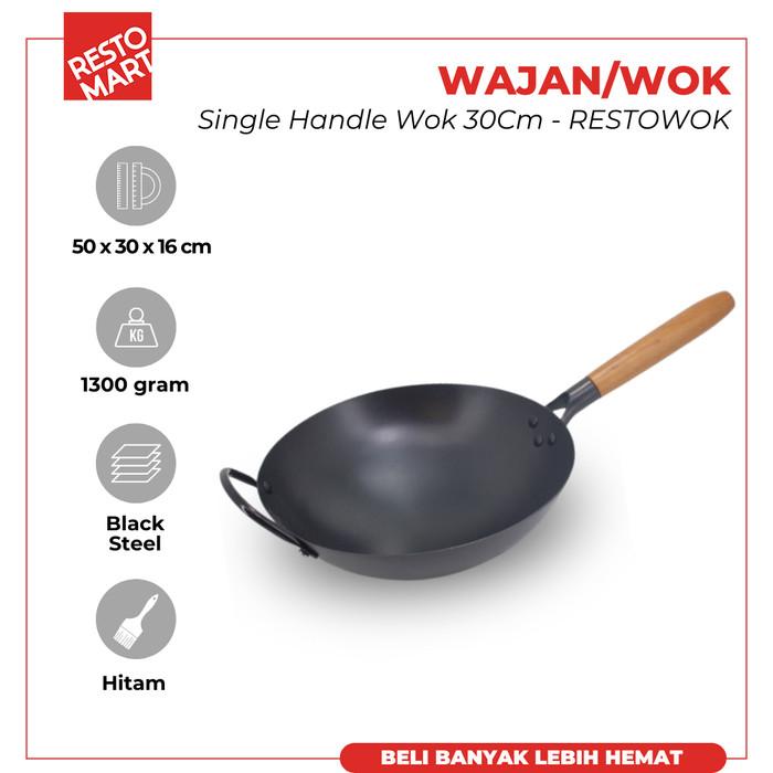 WAJAN BAJA PRE SEASONED / KUALI / WAJAN BLACK STEEL / SINGLE HANDLE WOK 30 CM RESTOWOK (2291093) (F12) - 1 PCS