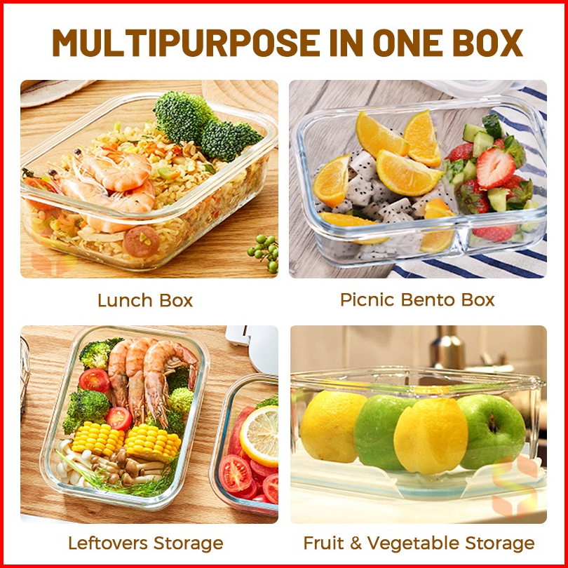Ookas Tempat Makan Kaca Lunch Box Kotak Penyimpanan Microwave Bekal
