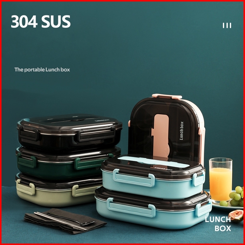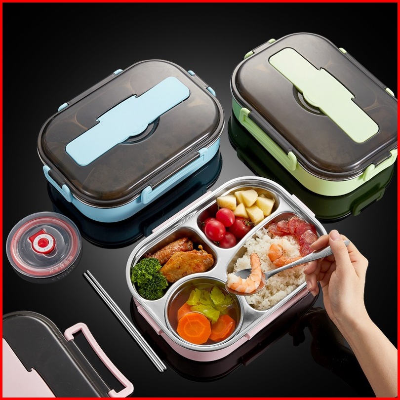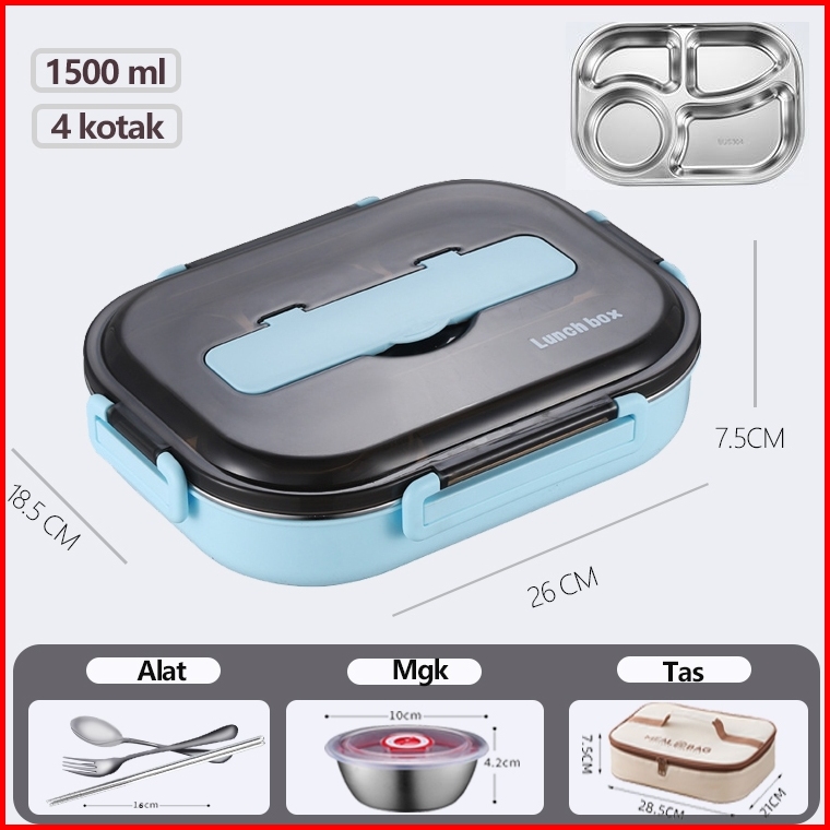 Lunch Box Kotak Makan 4 Sekat Sus 304 Stainless Steel Lunch Box Stainless Tahan Panas Dan Anti Tumpah