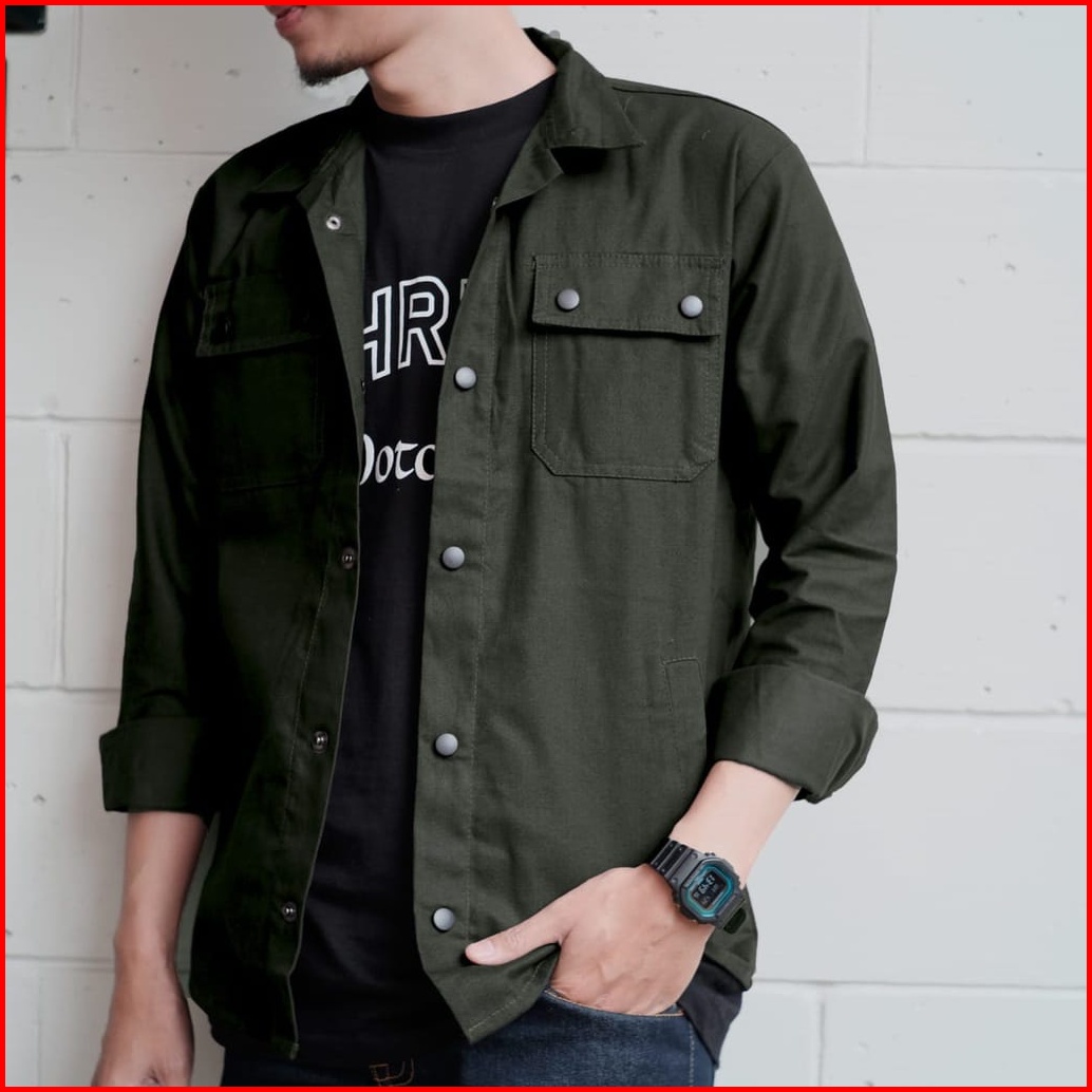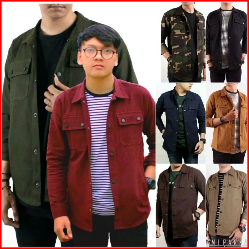 Jeket Semi Parka Pria Trucker Jaket Man Canvas Jaket Kancing Hitam Full Size