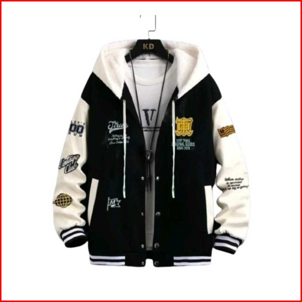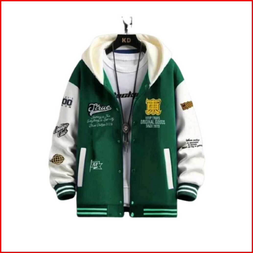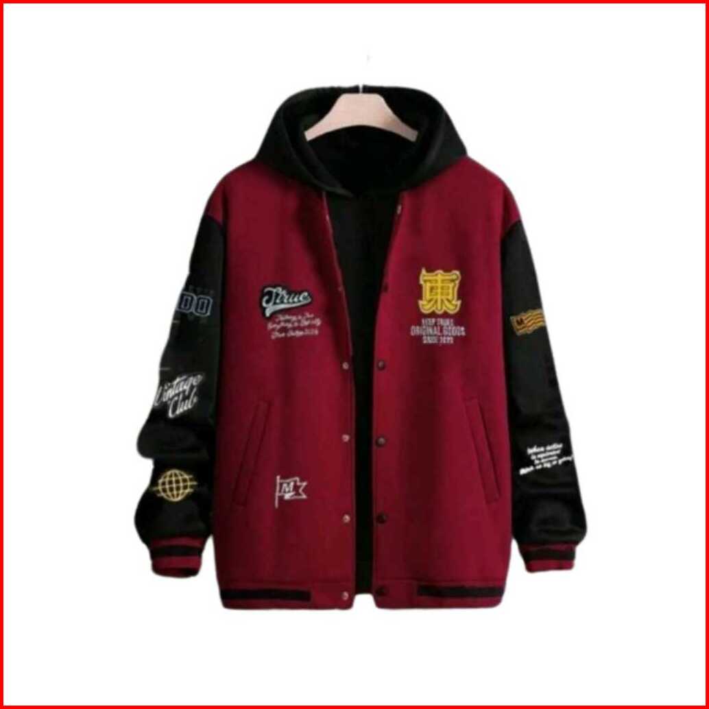 Jaket Hoodie Varsity Teks Full Bordir - Jaket Baseball Varsity Model Kancing Premium Quality