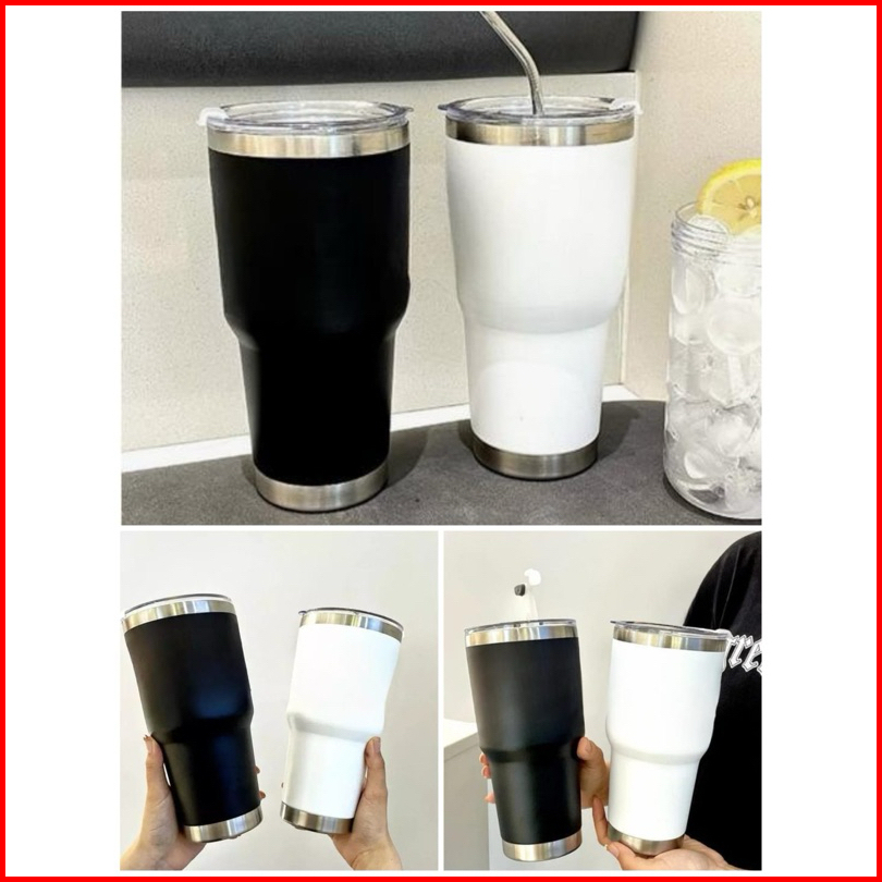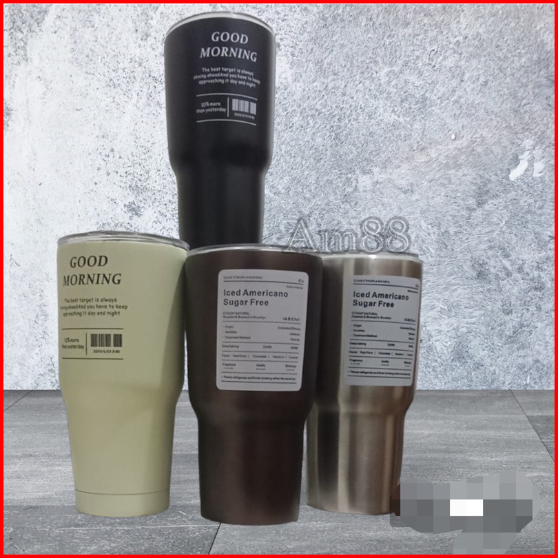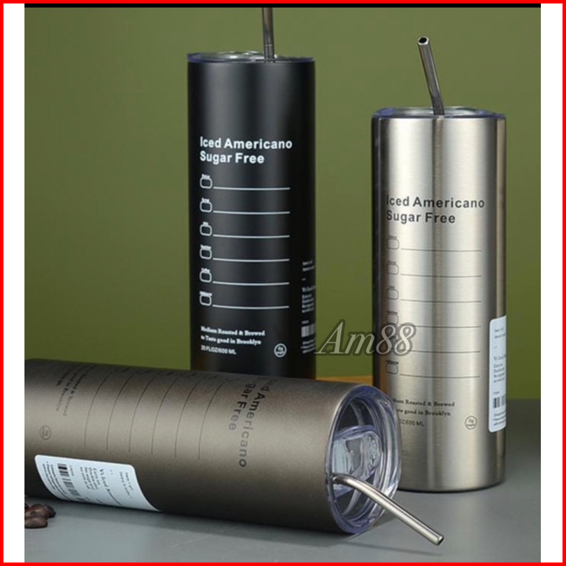 Tumbler 900ml Americano Stainless Stell Free Sedotan - Silver