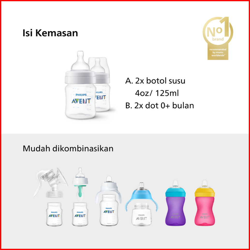 Philips Avent Botol Susu Bayi Anti Kolik Secara Klinis Mengurangi Kolik 125 Ml Twin Scy100 02