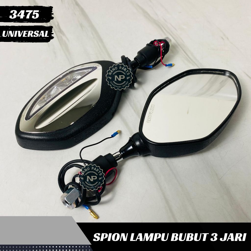 Spion Lampu Bubut 3 Jari Tangkai Pendek Sen Running Sein Chrome Silver Model Beat Bisa H Y Universal