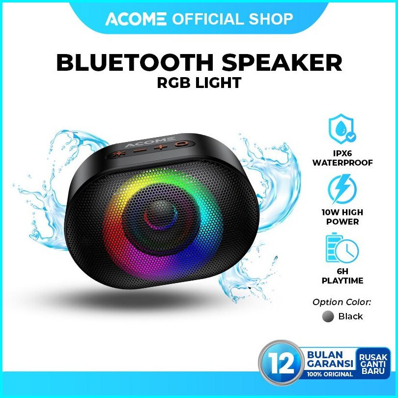 Acome Speaker Bluetooth Super Bass High Power 5.0 10w Ipx6 Waterproof Rgb Light Rhyme Rave Party A10