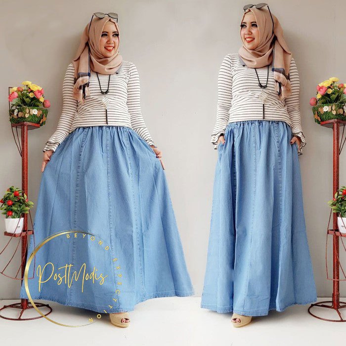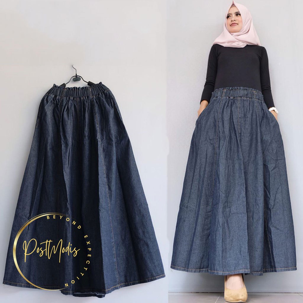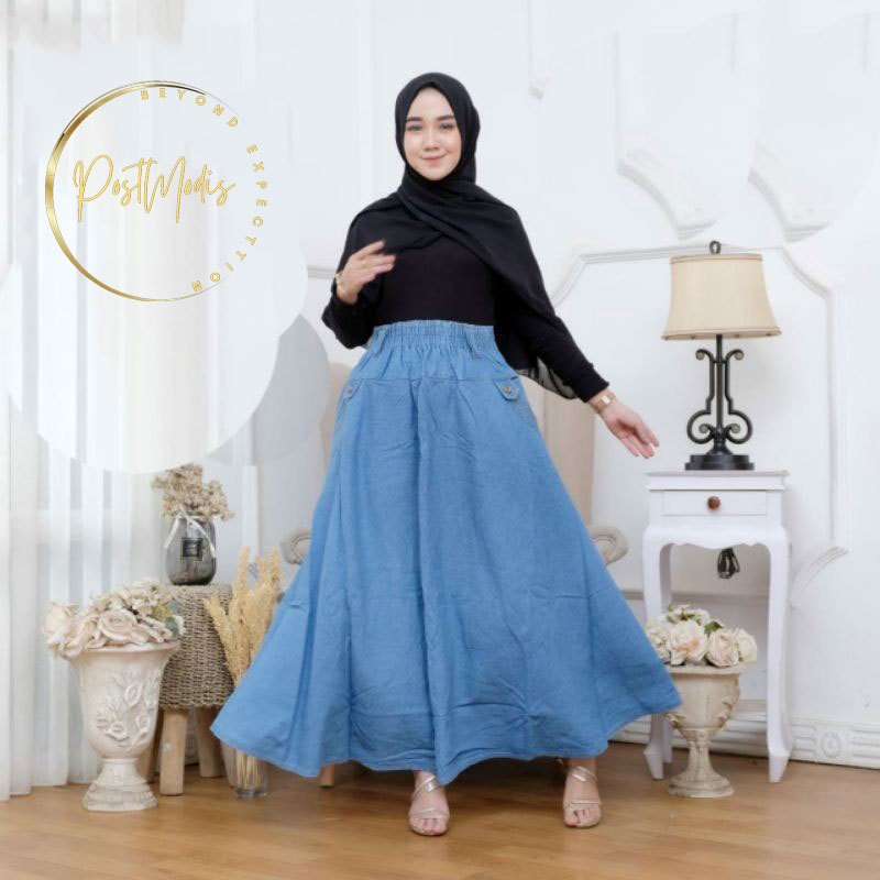 ROK JEANS WANITA ETUDE | ROK JEANS PAYUNG | ROK KLOK | BIG JUMBO SIZE | KARET MELAR | DENIM SKIRT