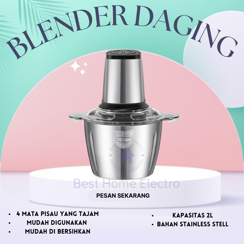 Blender Daging Chopper Meat 2 Liter Grinder Gilingan Daging Baja Serbaa Anti karat