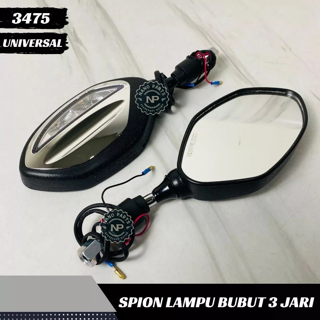 Spion Bubut 3 Jari Tangkai Pendek Plus Led Sen Pcx Vario Beat Scoopy Nmax Aerox Supra Fizr Dll