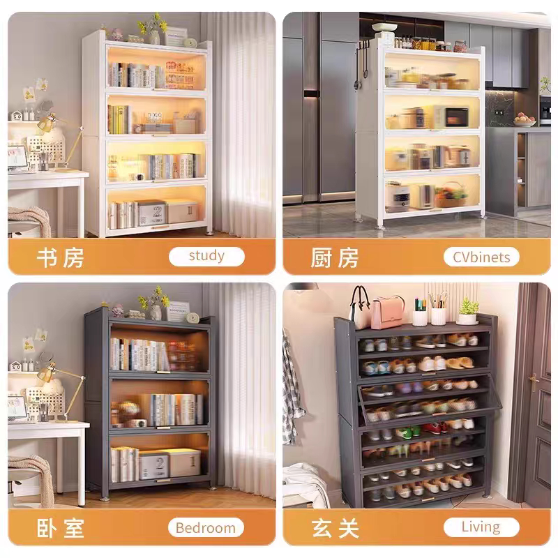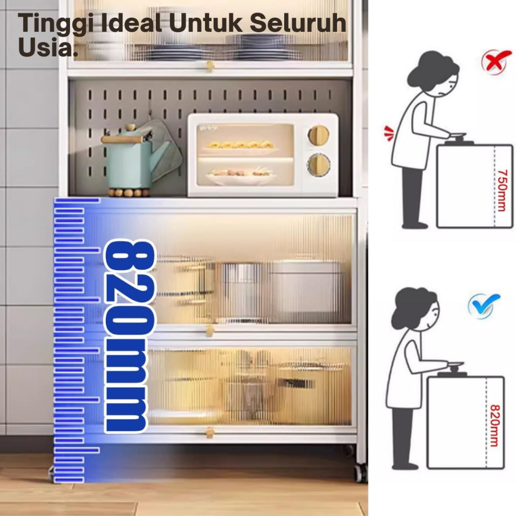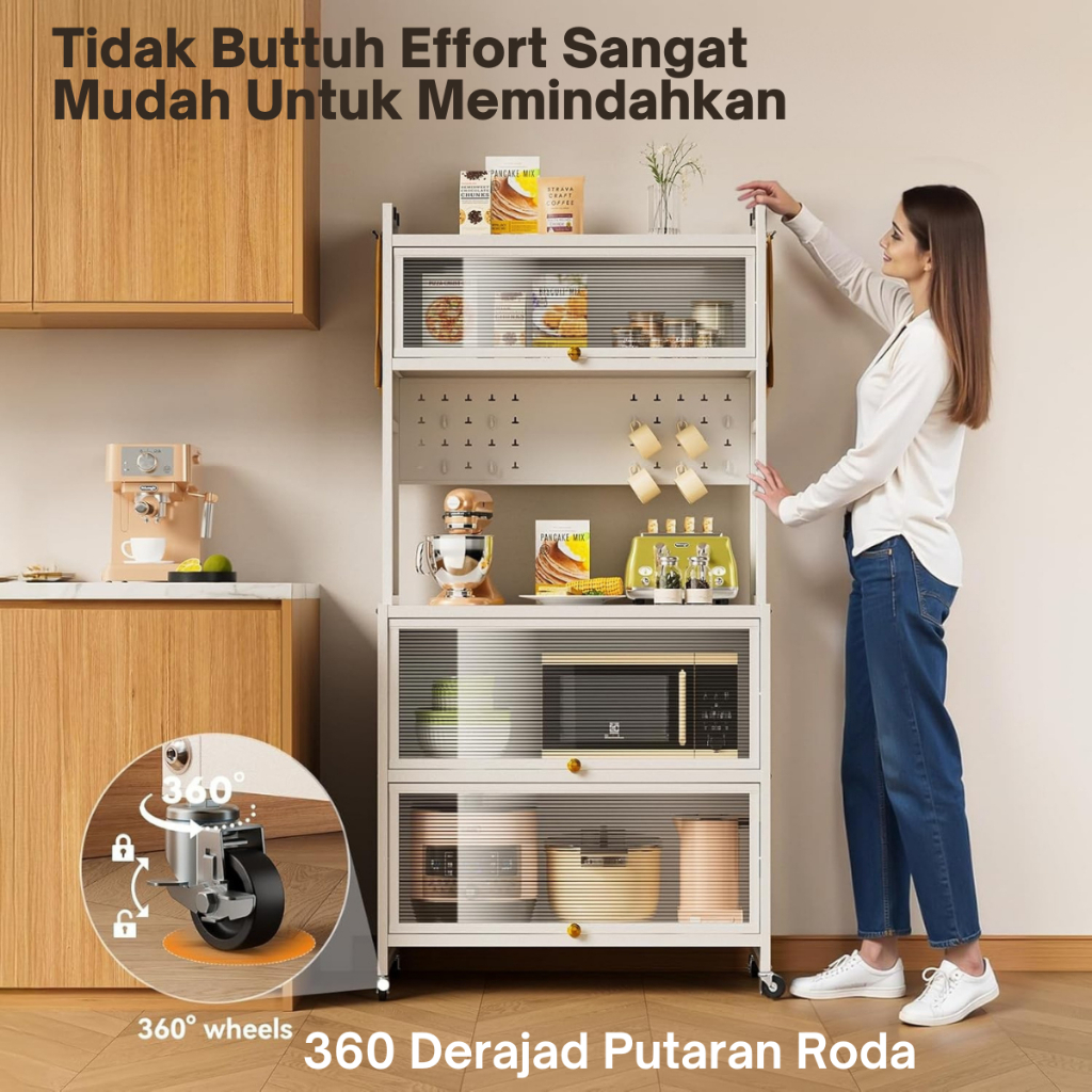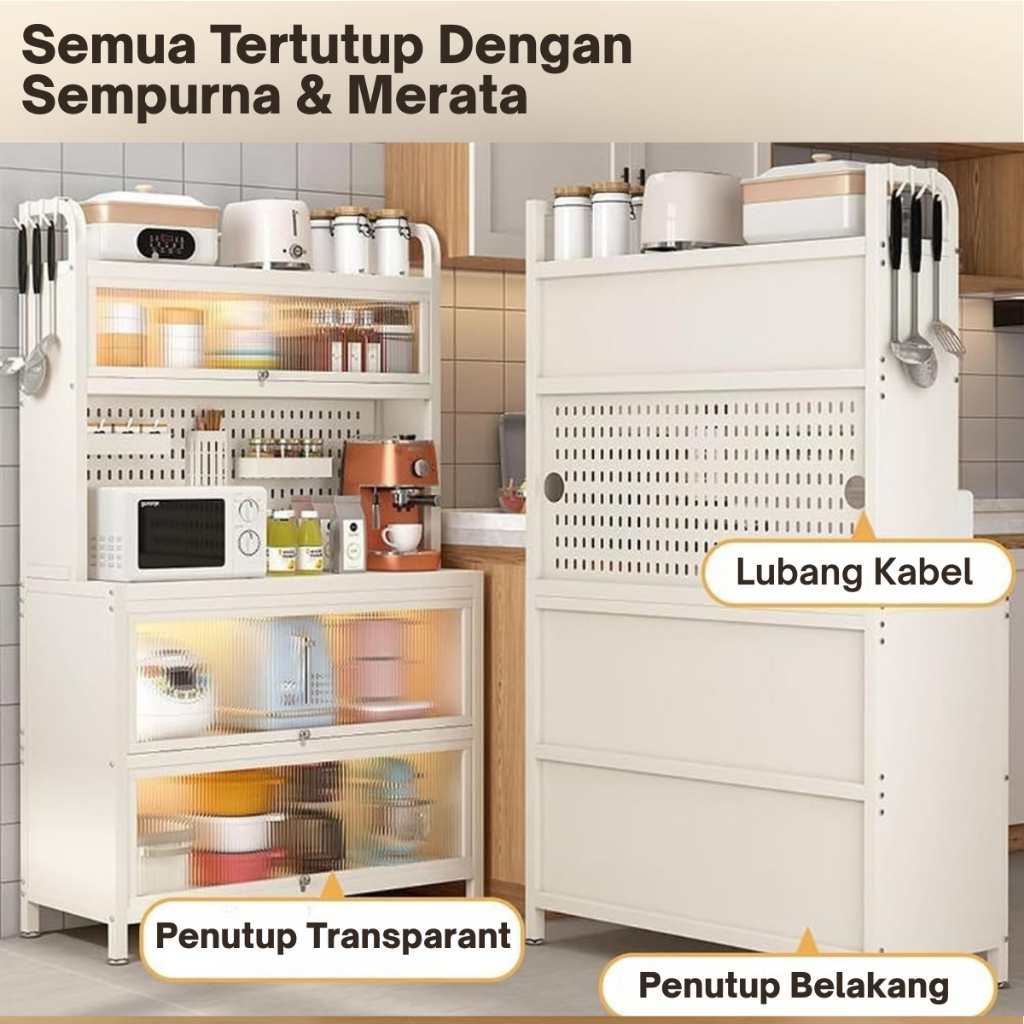 ES Rak Dapur Dengan Pintu Tertutup Full Besi Lemari Rak Piring Susun Rak Oven Microwave Minimalis