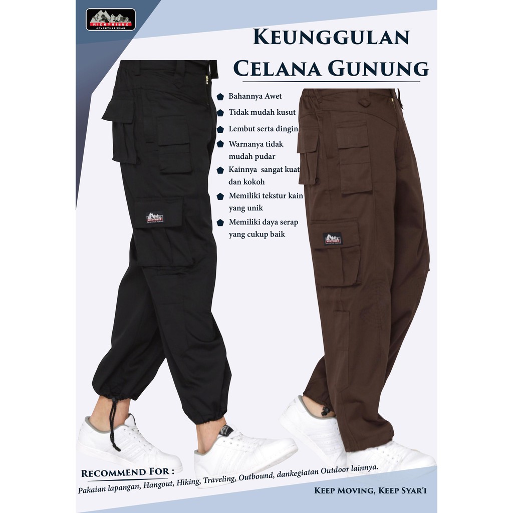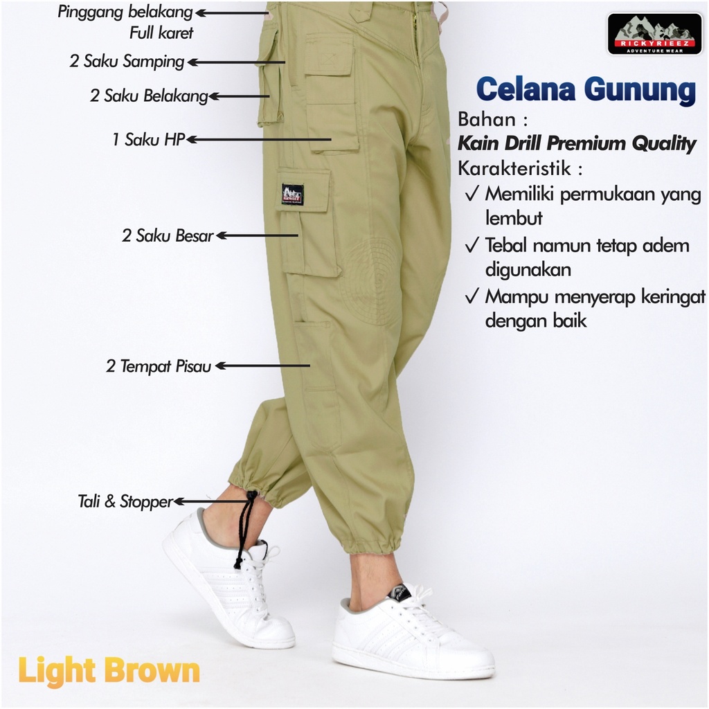 Celana Gunung Panjang Cargo Hiking Outdoor Pria Wanita Bahan Drill Premium Adem Tebal Kuat & Awet