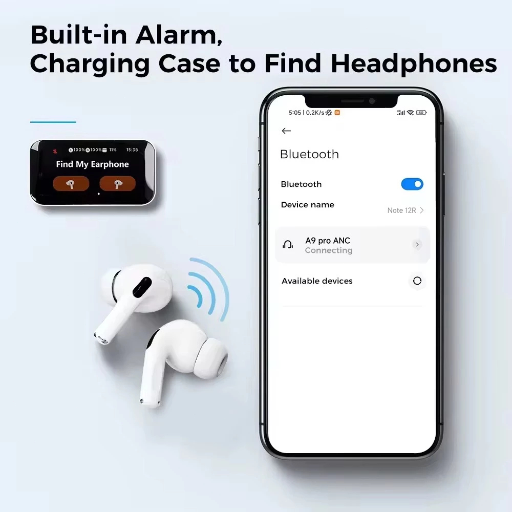 [Ready]TWS LED A9 Pro With Led Charging Case - Noise Cancelling earbuds ANC ENC BALANCE BASS JAZZ STUDIO Mode adjustment