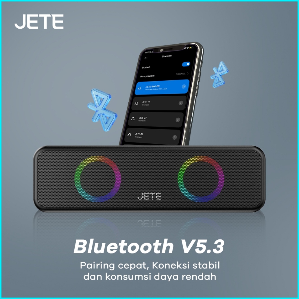 Speaker Bluetooth Portable Bt V5.3 6watt Jete Sm3 With Led Light - Garansi 2th