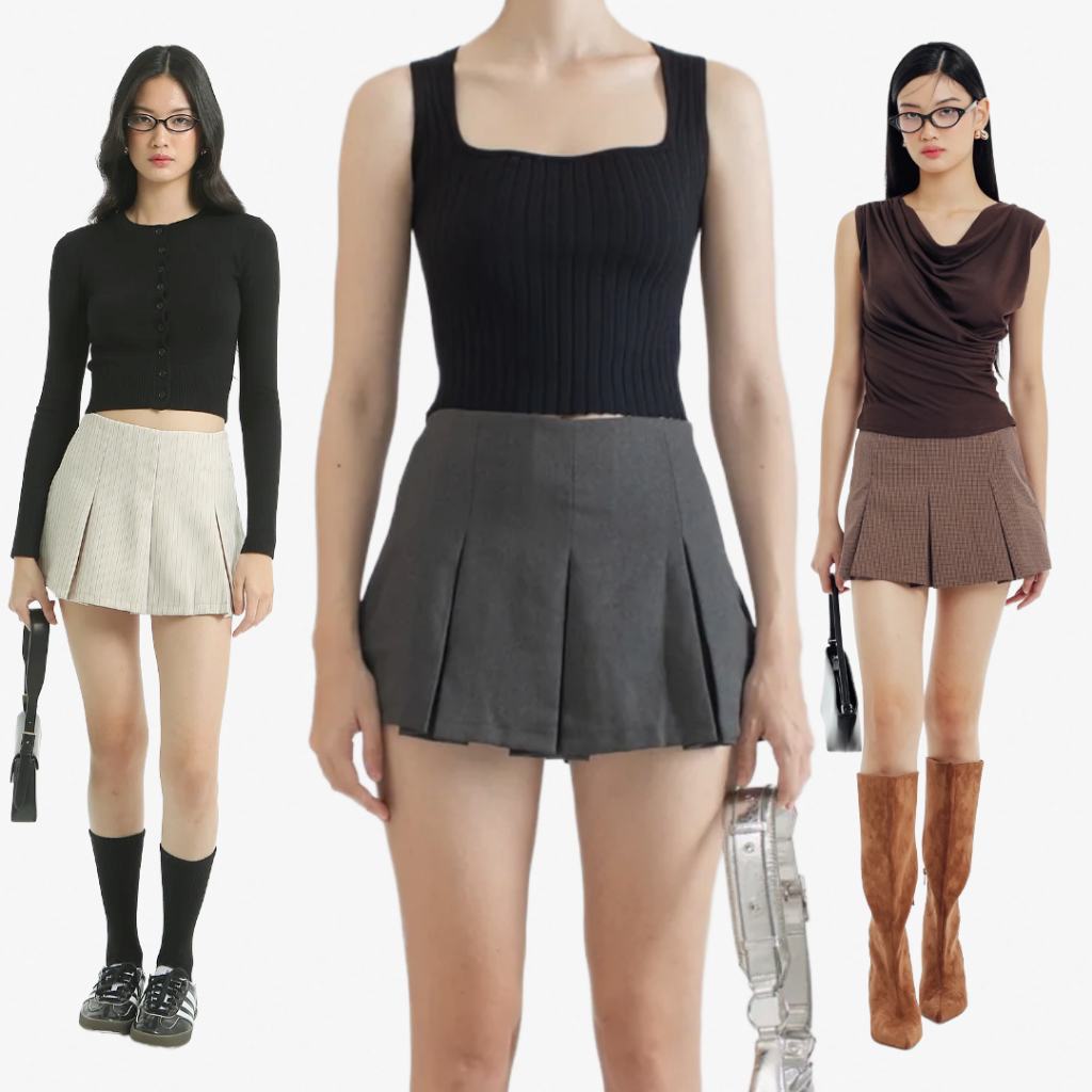 ZUHA SKIRT – OUDRE | 5 colors | Bawahan Wanita | Rok Pendek | Skort Wanita Trendy | Box Pleats Mini Skirt | Plaids Skirt
