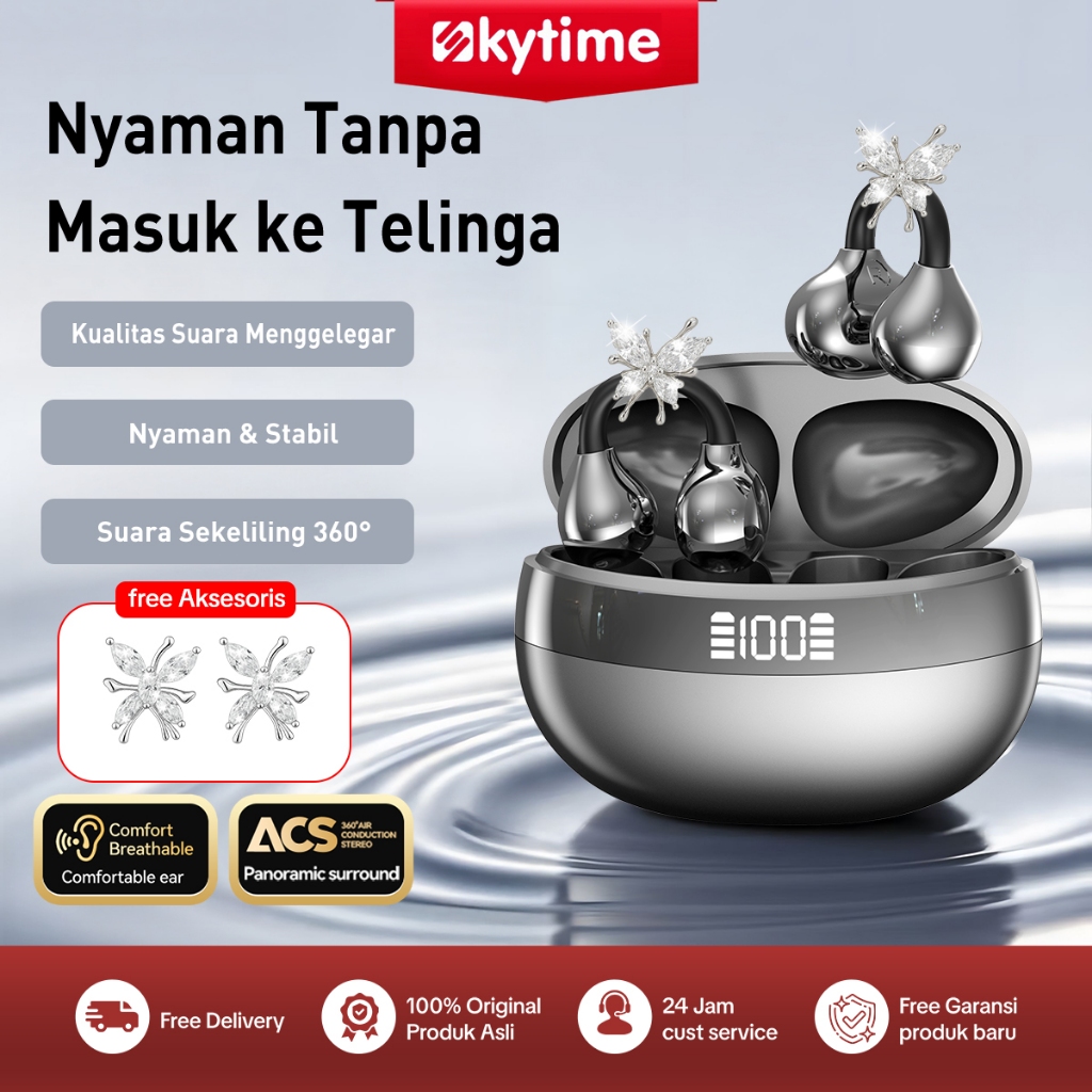 (New Product) Skytime EP85E New Clip-on Open-back Wireless Bluetooth Earphones High-Definition Sound Quality Battery Dis