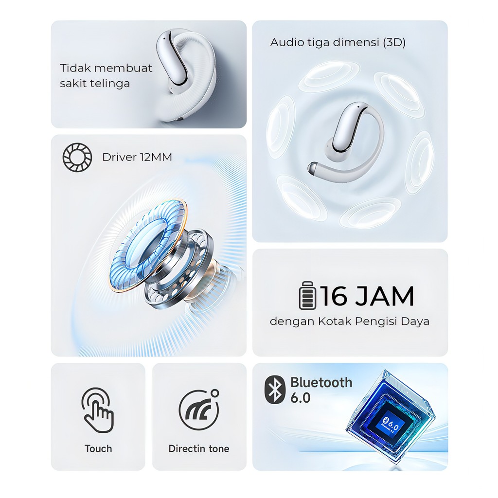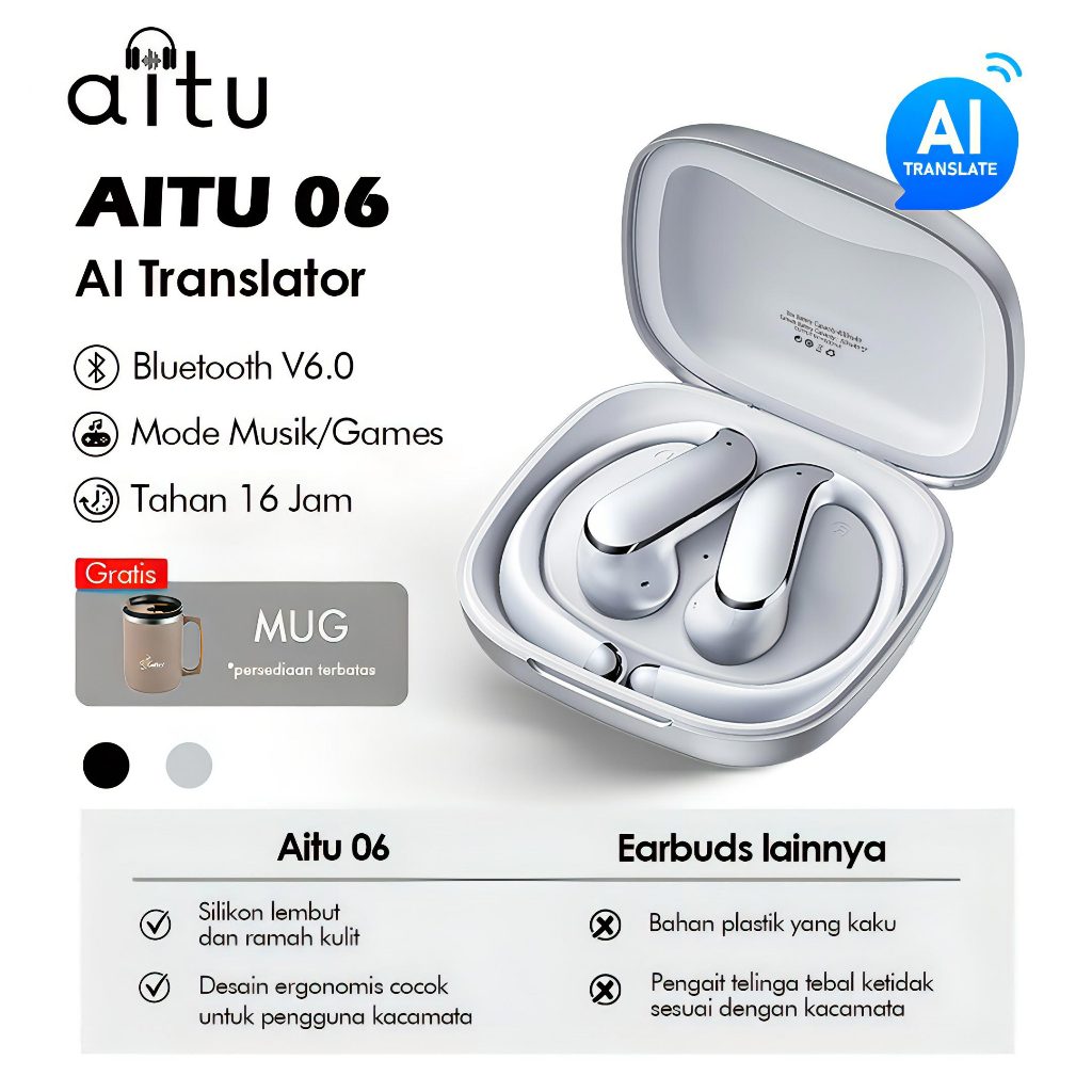 [FREE GIFT] Aitu 06 TWS Headset Bluetooth Sport Open Ear Waterproof IPX5 High Bluetooth Connection V6.0 Fitur AI Penerje