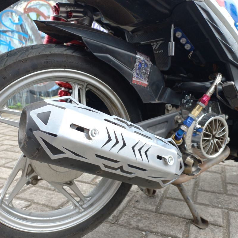 Cover Tutup Knalpot Warna Silver Beat Scoopy Genio Vario Mio Model Robot Bahan Besi