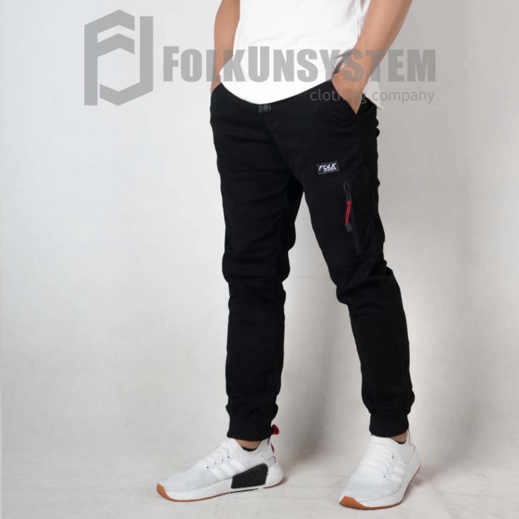 Celana panjang Chino joger zipper sleting