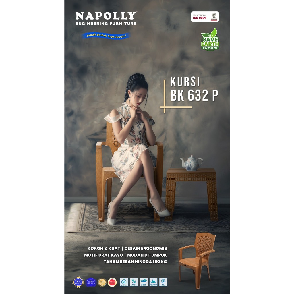BK 632 P - Kursi Plastik Pangeran Napolly / Kursi Senderan Plastik Tangan Anyaman / Bangku Plastik Napolly / Kursi Tamu