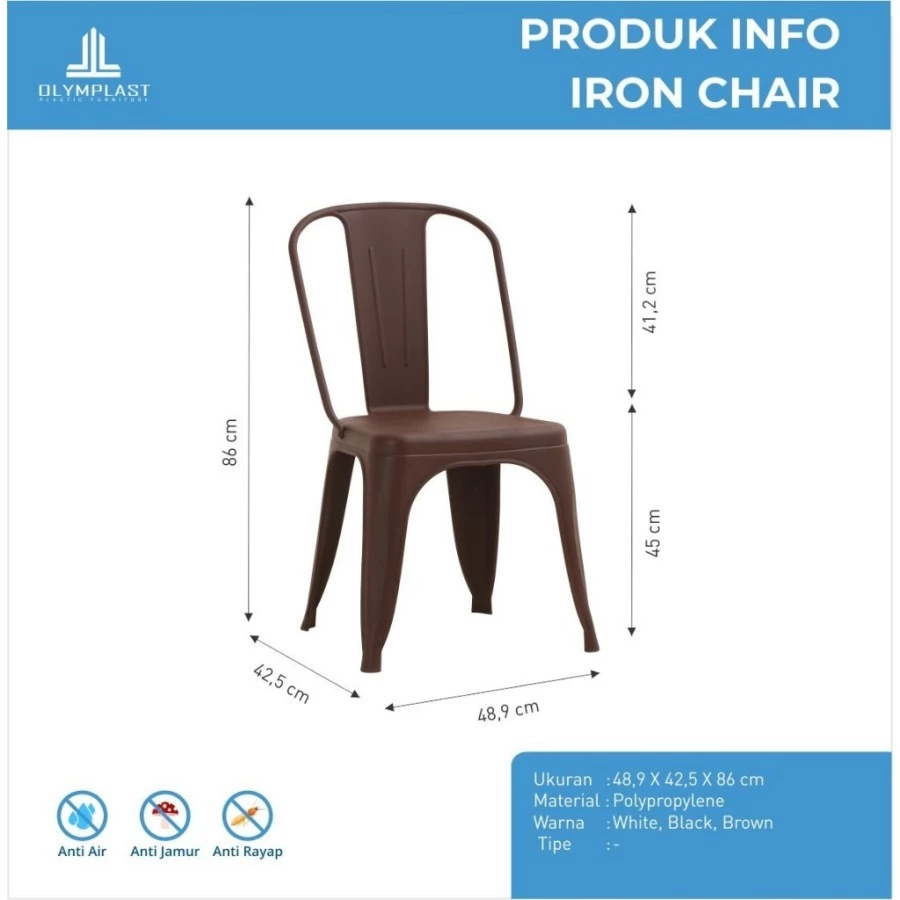[KUAT HINGGA 150KG] OLYMPLAST IRON CHAIR KURSI SANTAI PLASTIK MINIMALIS / CAFE / ESTETIK