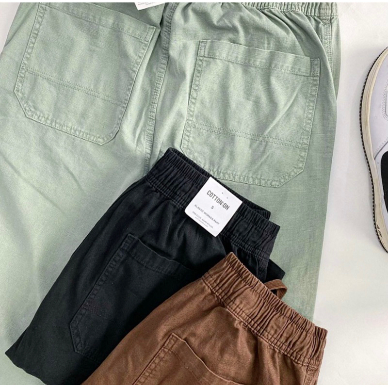 Celana Cott On Elastic Worker Pants (3 Colours)