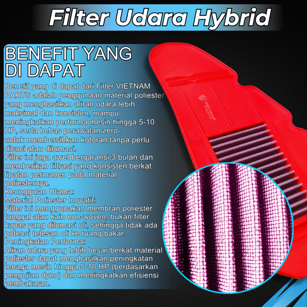 Filter Hawa Hybrid Saringan Udara Vario Beat Scoopy Genio Nmax Aerox Mx-King Mio Sproty Mio Smile