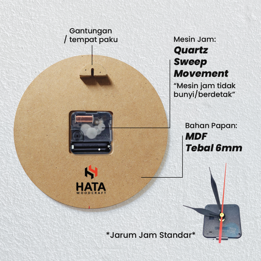 HATA Jam Dinding Kayu Variasi Motif – Aesthetic Minimalis Japandi Style Silent Movement