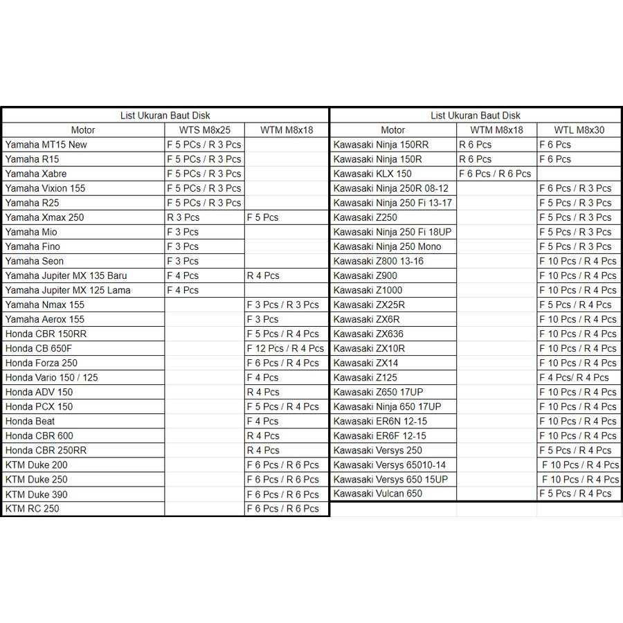 Baut Cakram Wr3 Titanium Wtm M8X18 Nmax Aerox Lexi Adv Pcx Vario Beat Forza Cbr Klx Ninja R Rr