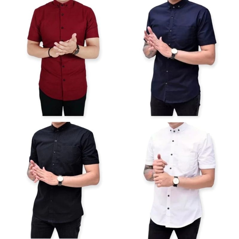 PAKET HEMAT PROMO 4 PCS KEMEJA PRIA POLOS LENGAN PENDEK casual formal kantor bahan halus katun