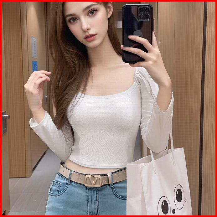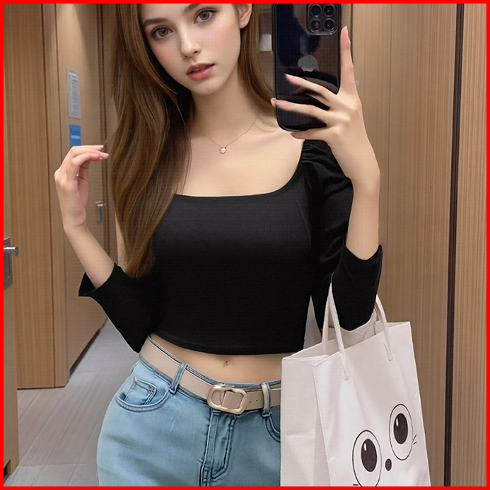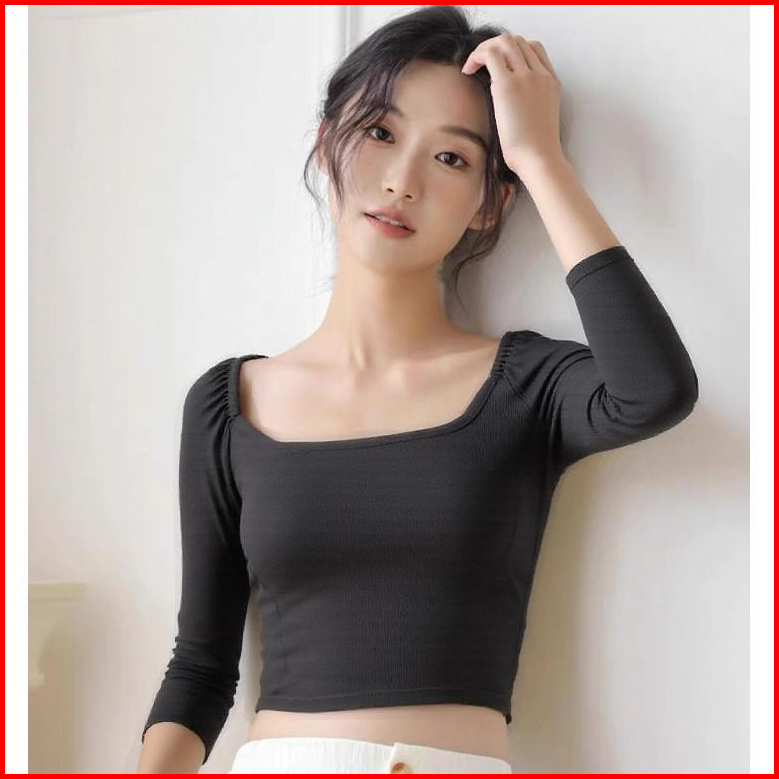 99koutlet Atasan Wanita Lengan Panjang Baju Square Neck Polos Basic Korean Style S M L Xl 3342 T-shirt Long Sleeve Crop