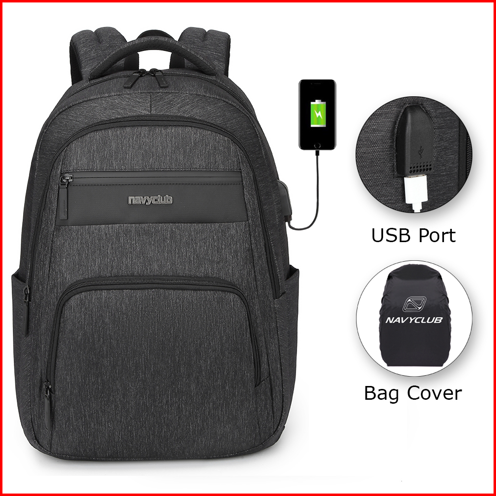 Navy Club Tas Ransel Laptop Ejg - Backpack Daypack Usb Port Tas Pria Wanita Free Bag Cover
