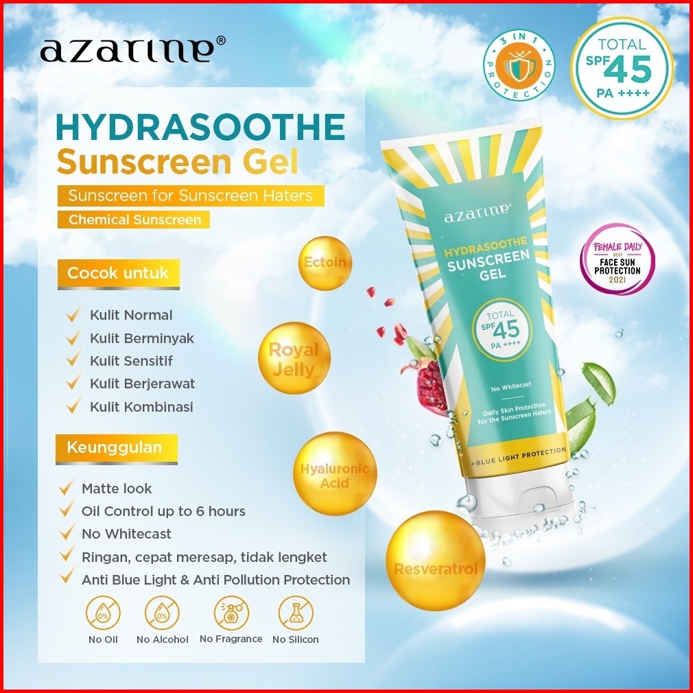 Ukuran Besar 50 Ml Azarine Hydrasoothe Sunscreen Gel Spf45 Pa Best Seller Suncreen Wajah Kulit Berminyak - Dijamin Origi