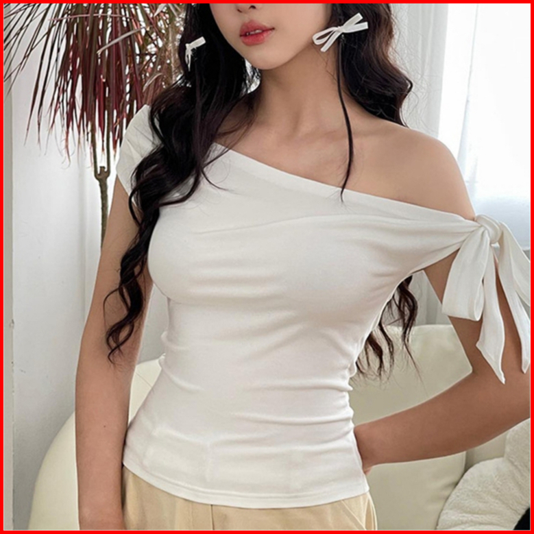 Premium Summer Casual One Shoulder T-shirt Twisted Strap Asymmetrical 1812 S M L