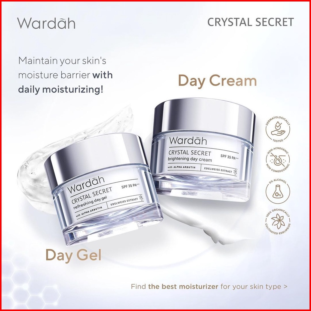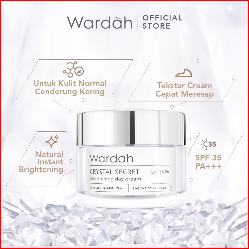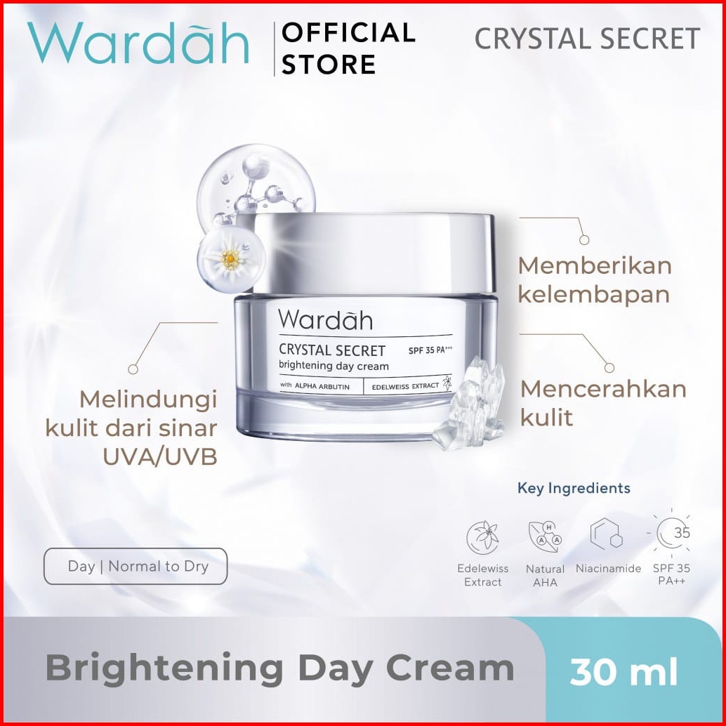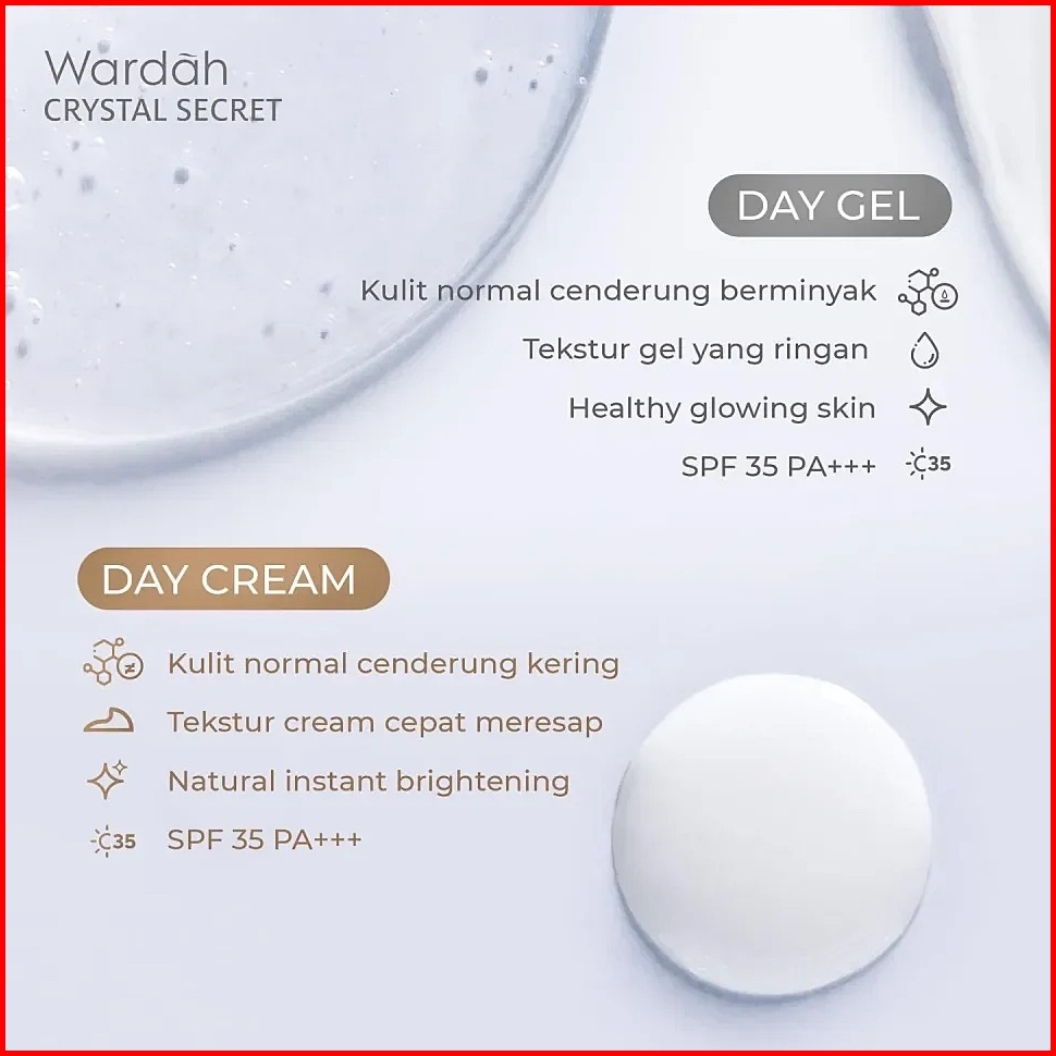 Wardah White Crystal Secret Day Cream Gel Spf 35 Dry Skin Ukuran 30 Gr 15 Ml - Skincare Mencerahkan Mousturizer Krim Pag