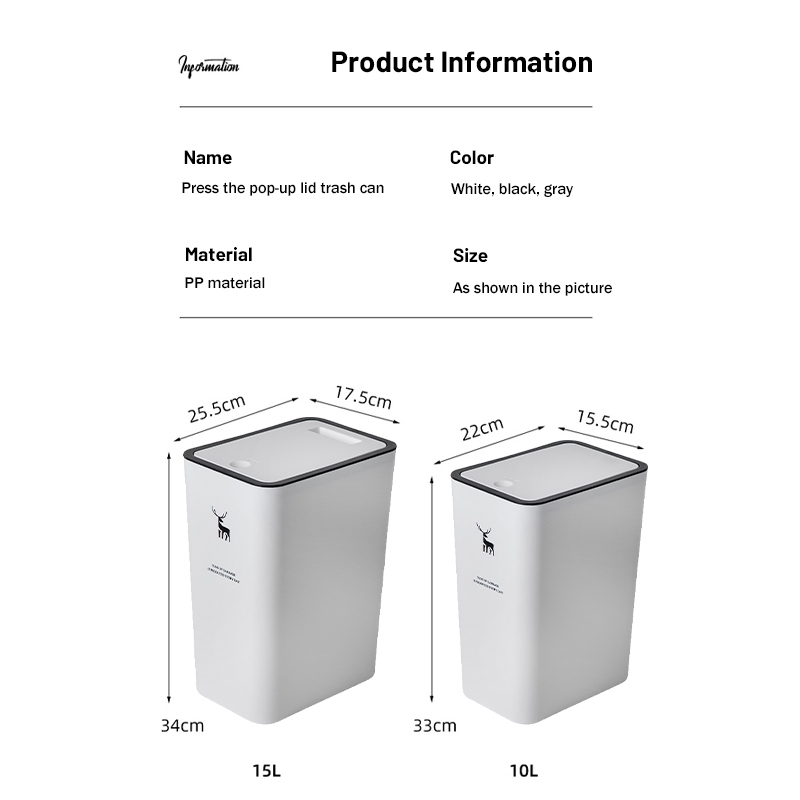 Tong Sampah Tertutup Minimalis Tempat Sampah with free trash bag Dengan Otomatis Klik Kotak Sampah Ruang Tamu