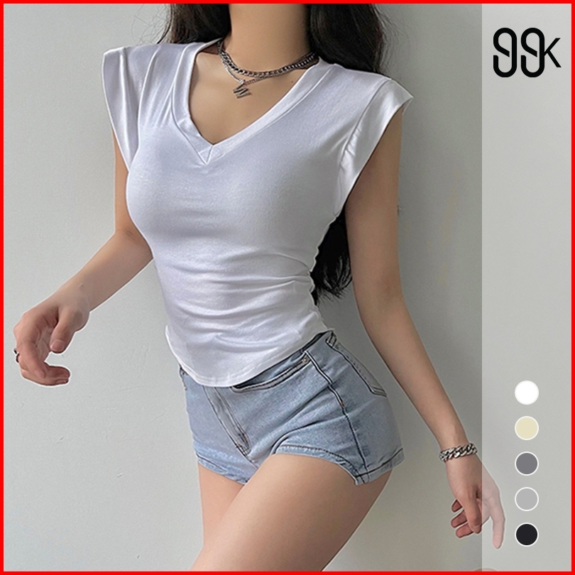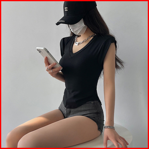 Premium Women S Basic V Neck Cap Sleeve Crop Top T-shirt 2810 S M L