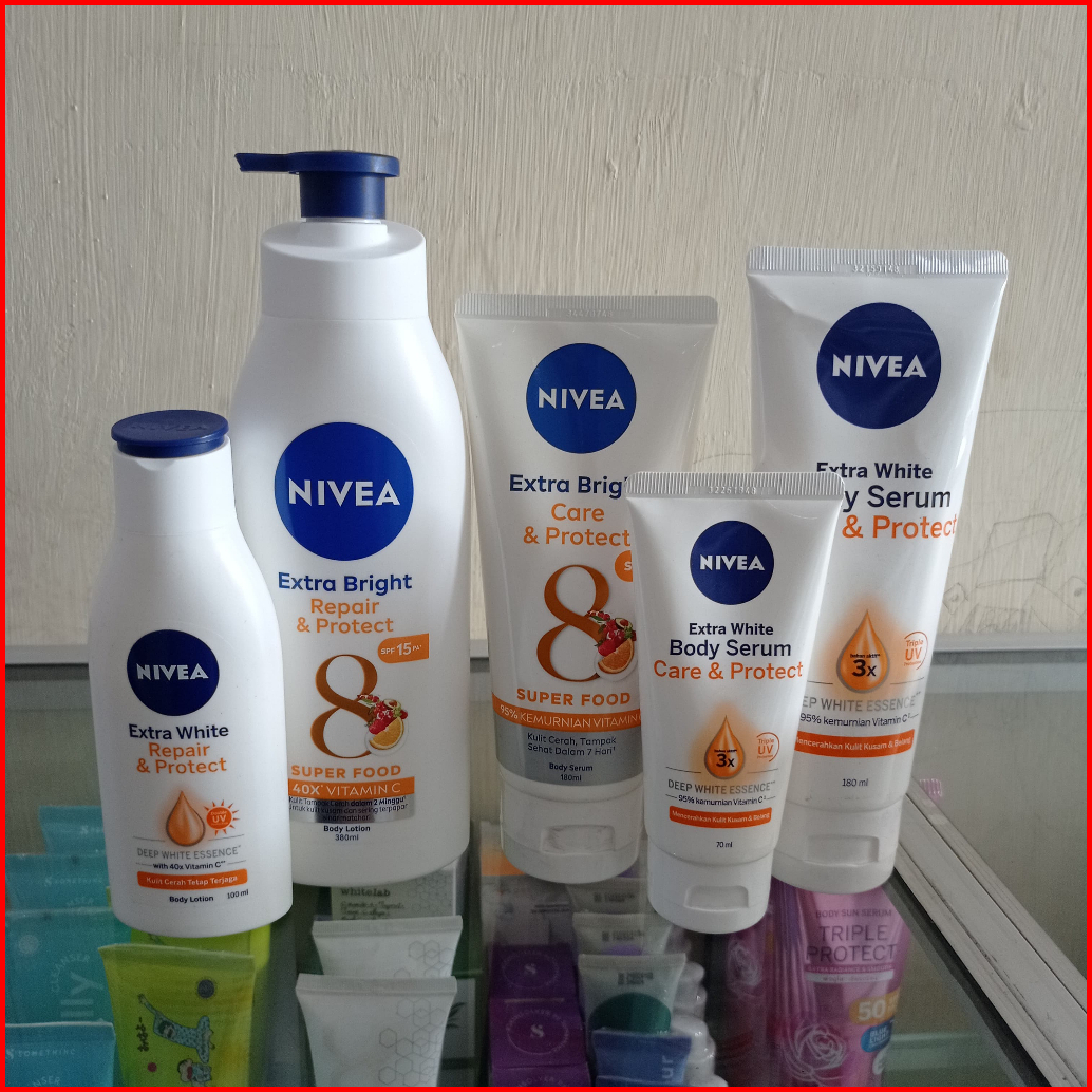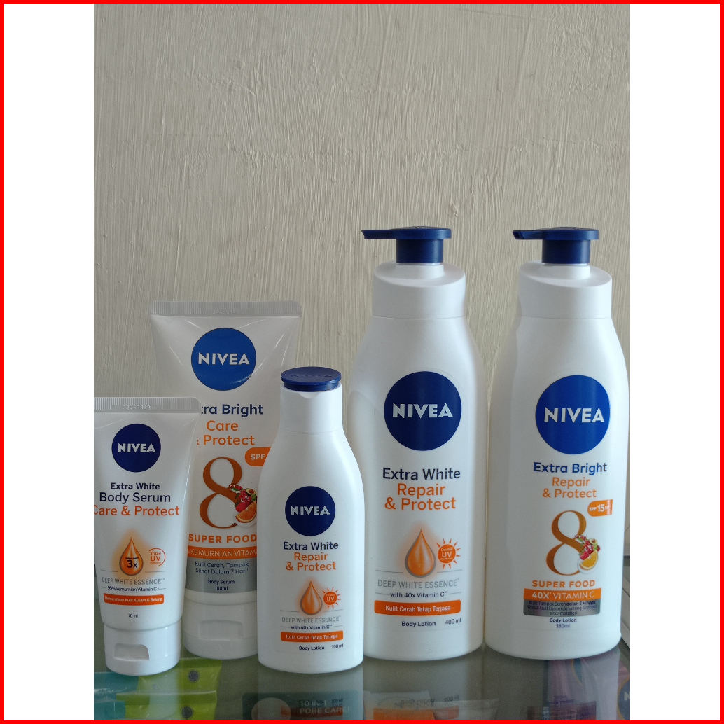 Nivea Body Serum Body Lotion Extra Bright White Care Repair Protect Spf 15 Double Uv Protection - Ukuran 180ml 400ml 200