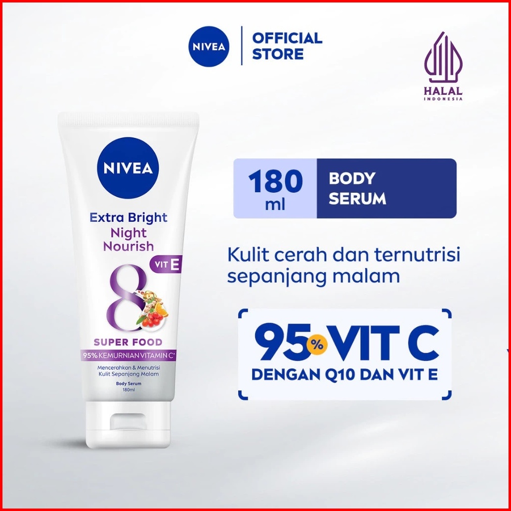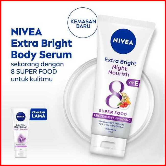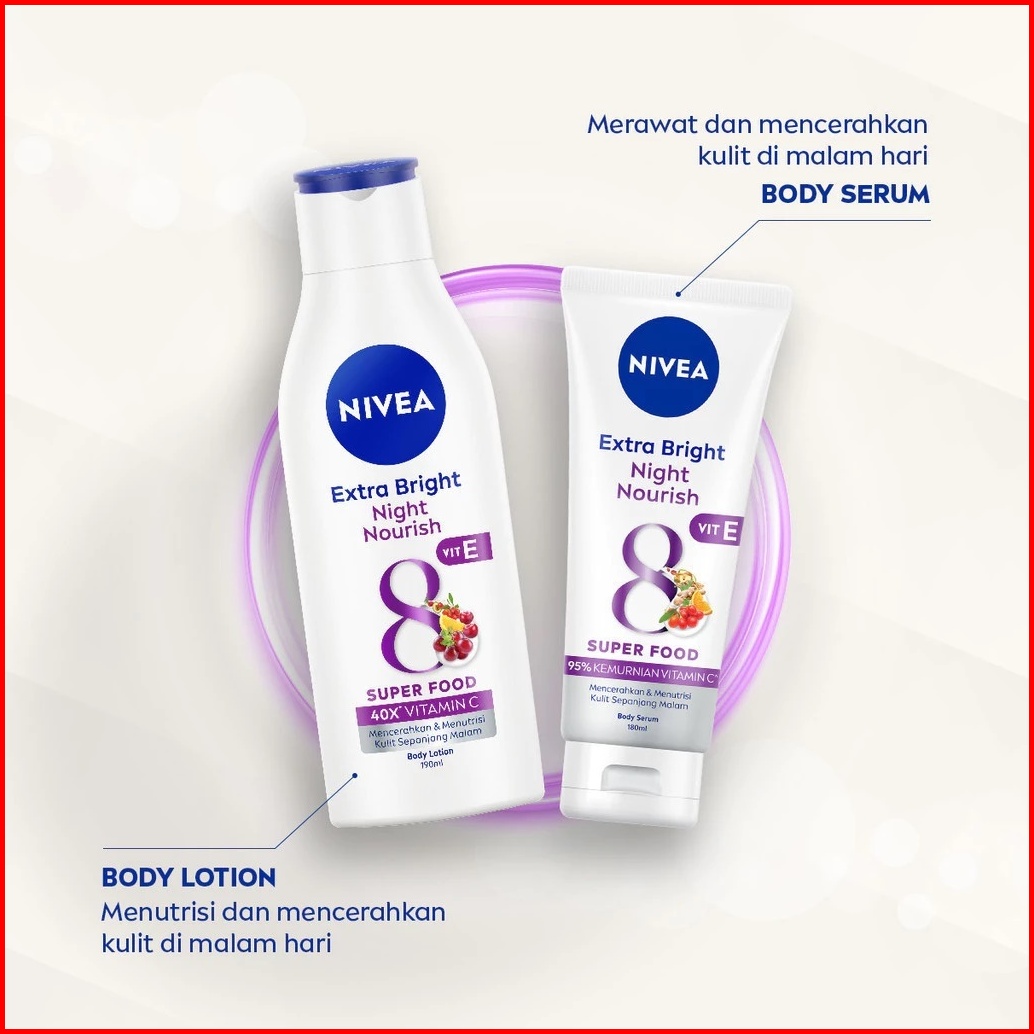 Nivea Extra White Night Nourish Body Serum 180ml Body Lotion 200ml - Mencerahkan Kulit Di Malam Hari Kemasan Besar Kecil
