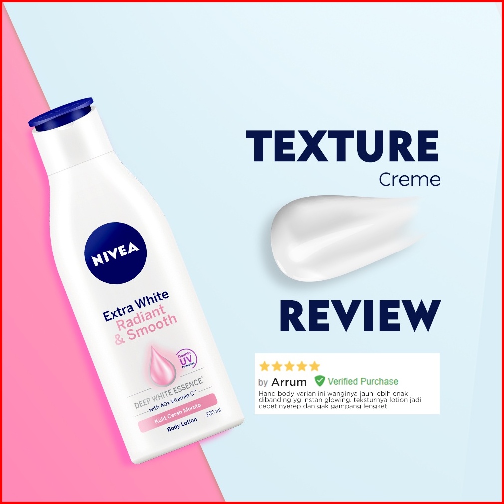 Nivea Extra White Radiant Smooth Body Serum Body Lotion Uv Protection Mencerahkan Kulit - Ukuran 180ml 400 Ml 200ml 100m
