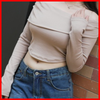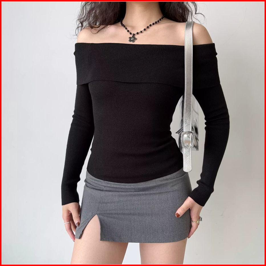 Off Shoulder T-shirt Crop Long Sleeve Slim Fit 1799 S M L