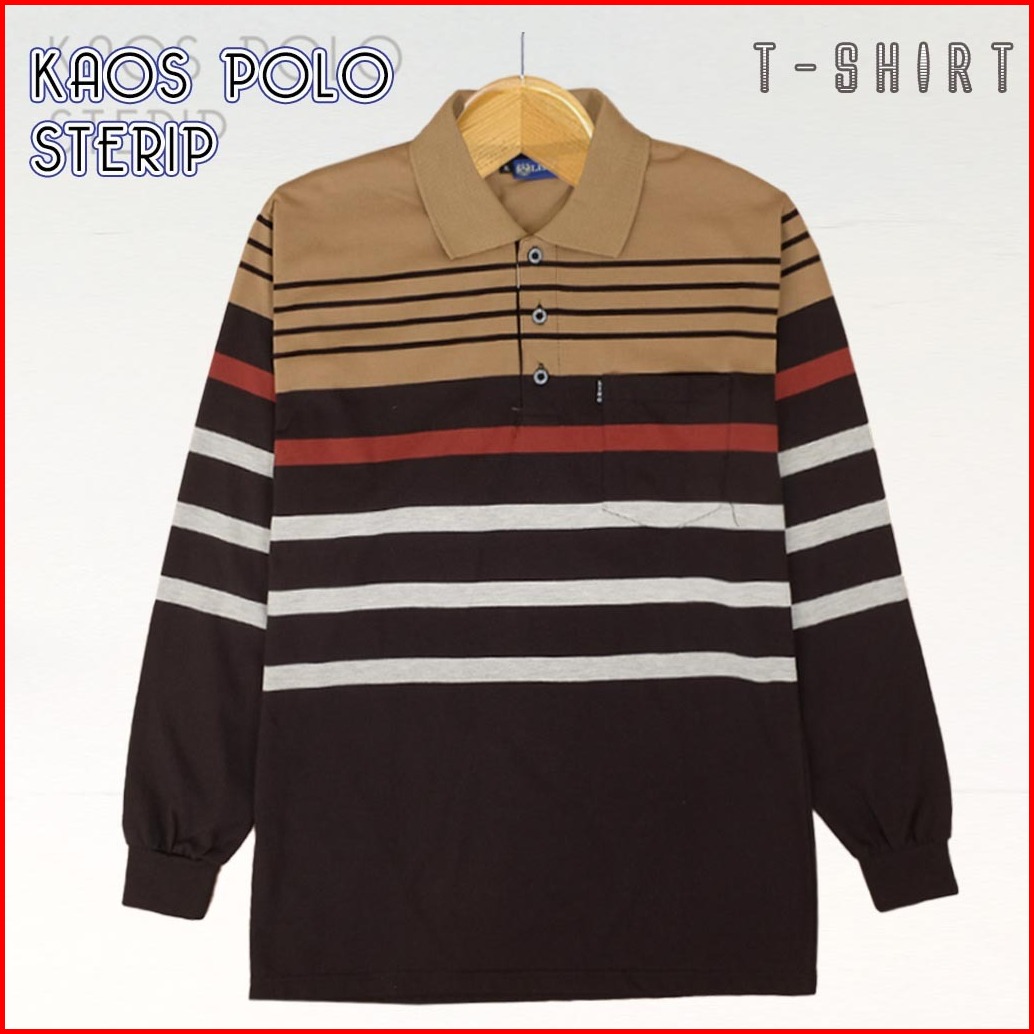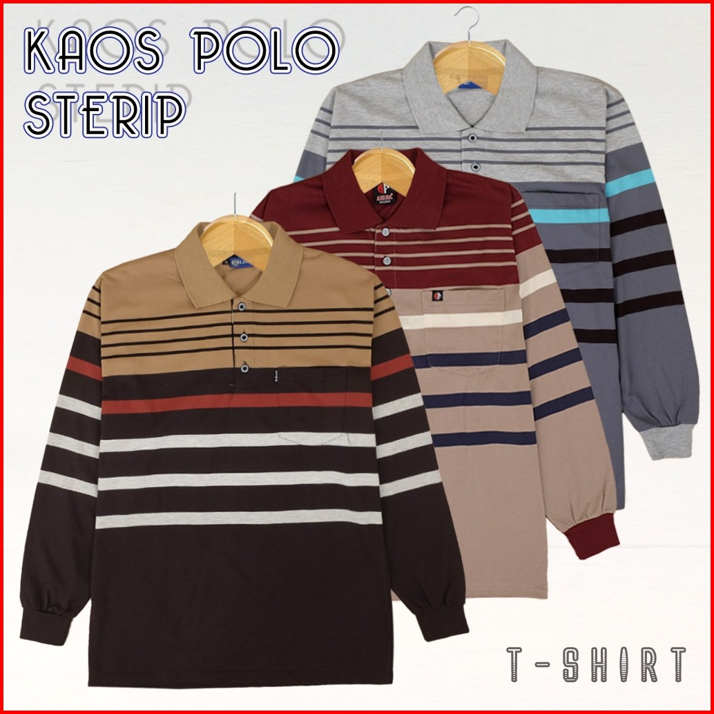 Kaospolos - Kaos Kerah Pria Poloshirt Distro Salur Stripe Kaos Pria Saku Motip Lengan Panjang