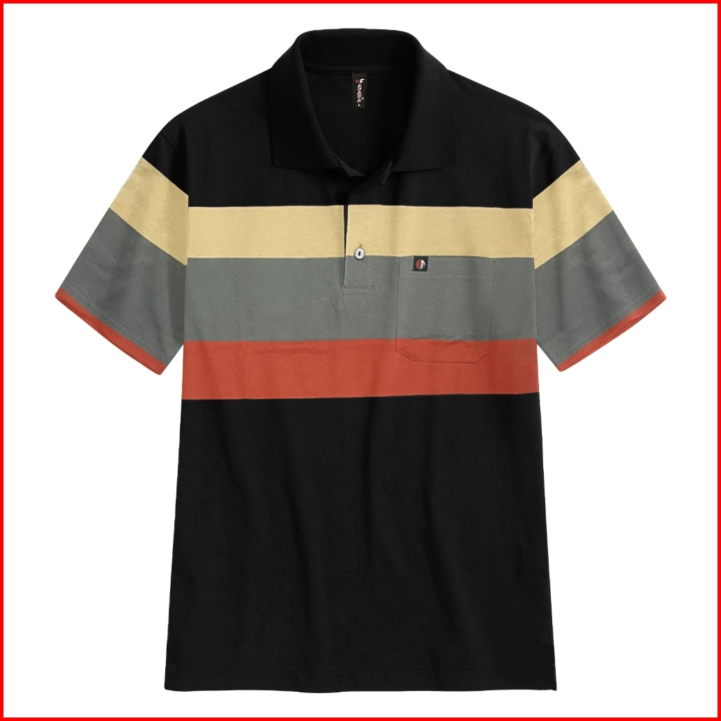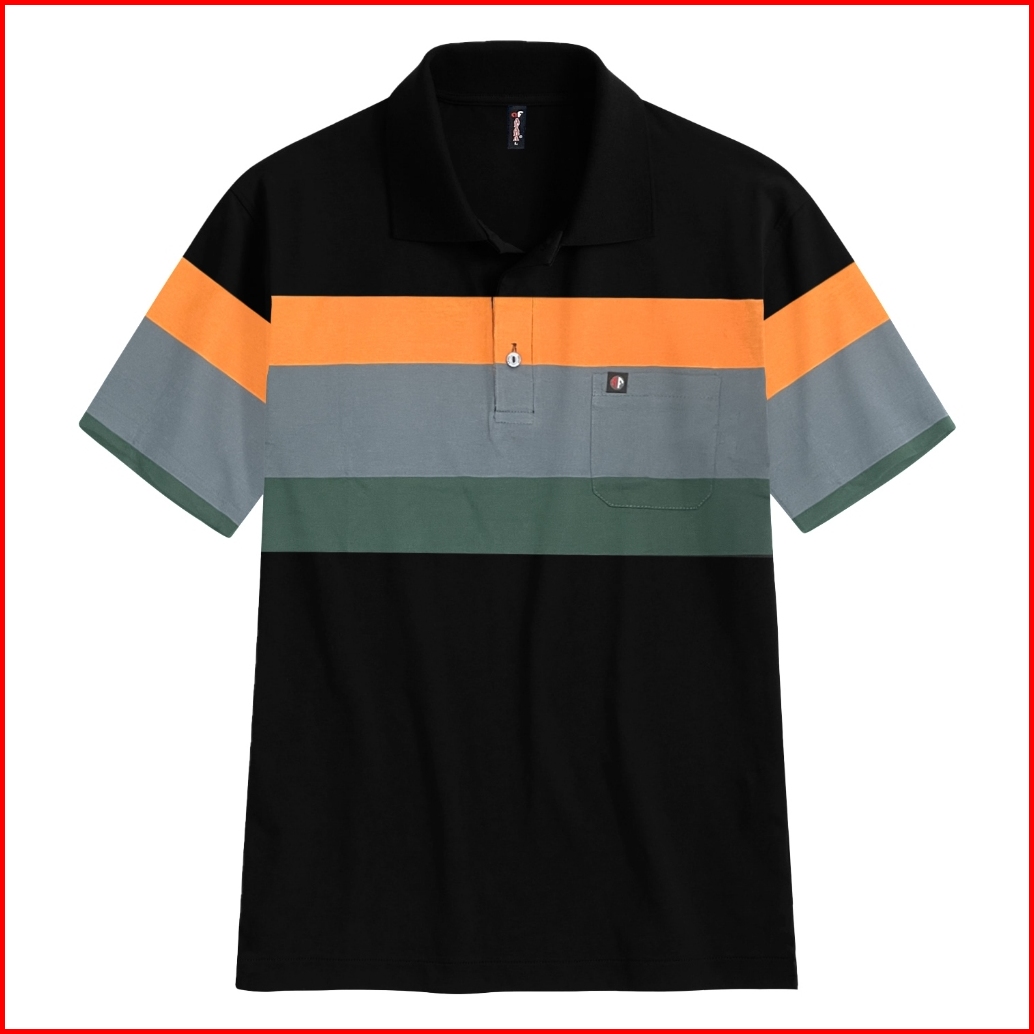 Kaospolos - Kaos Kerah Pria Polo Saku Distro Stripe Salur Lengan Pendek Polo Shirt Belang-belang