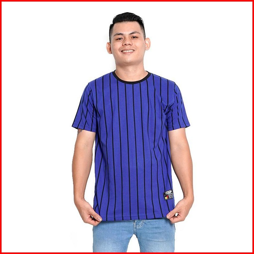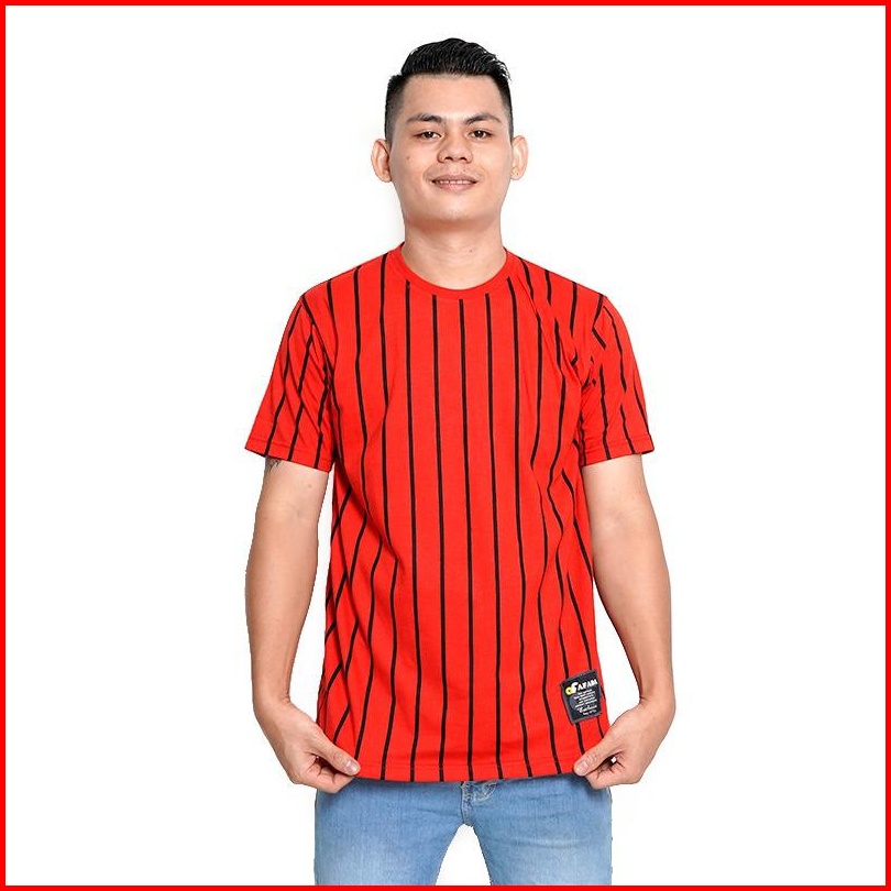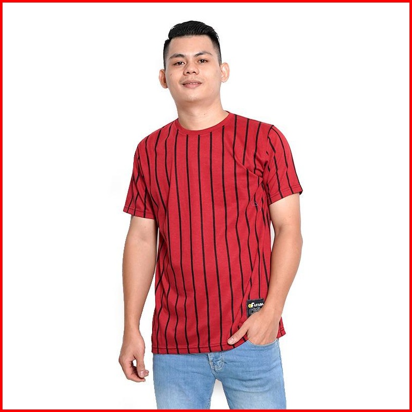 Kaospolos - Kaos Pria Stripe Vertikal Salur Belang-belang Kaos Oblong Garis-garis Lengan Pendek
