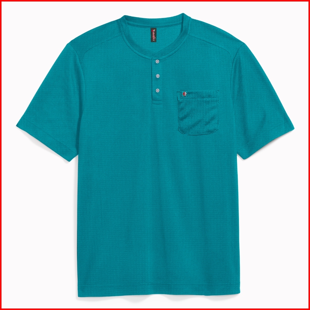 Kaospolos - Kaos Polos Pria Kerah Henley Kancing Saku Lengan Pendek Kaos Waffle Hanley Polos