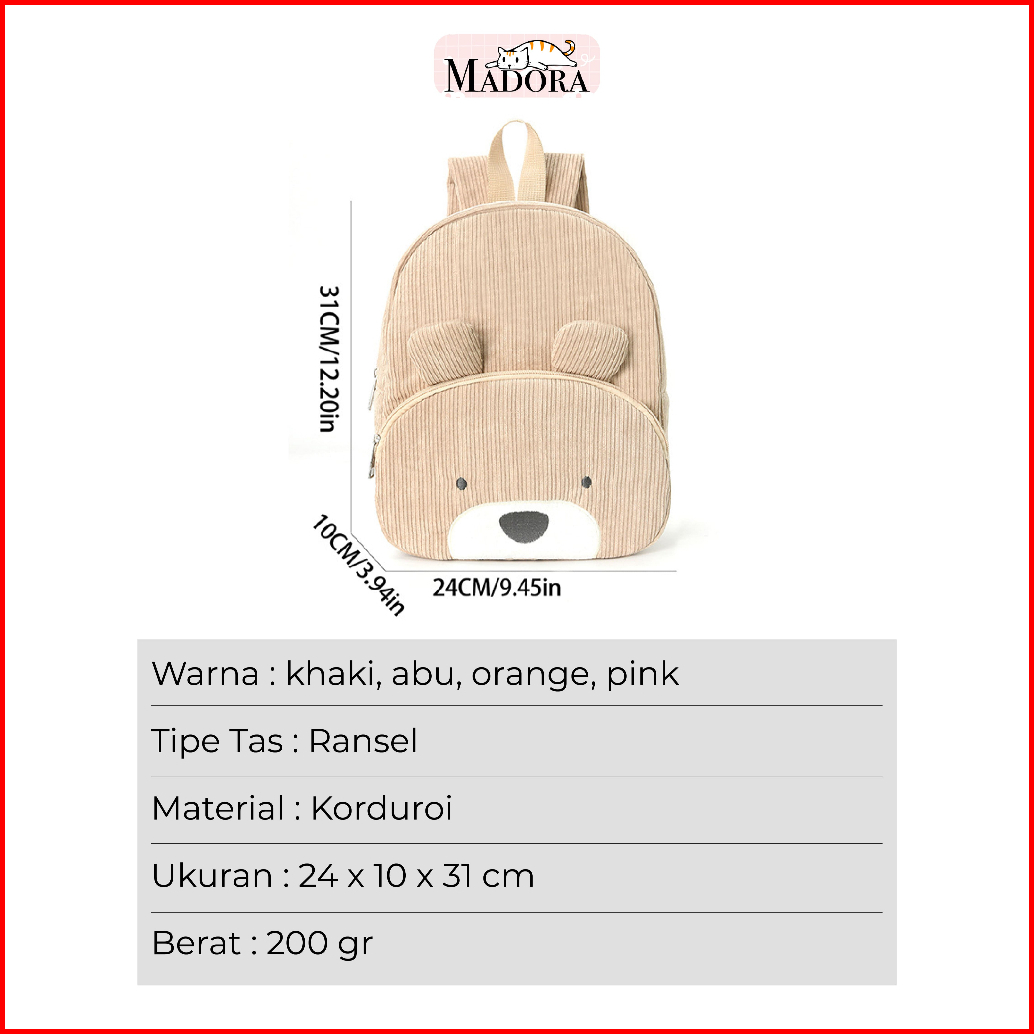 Madora Tas Ransel Anak Paud Tk Sd Backpack Mini Korduroi Karakter Hewan Lucu
