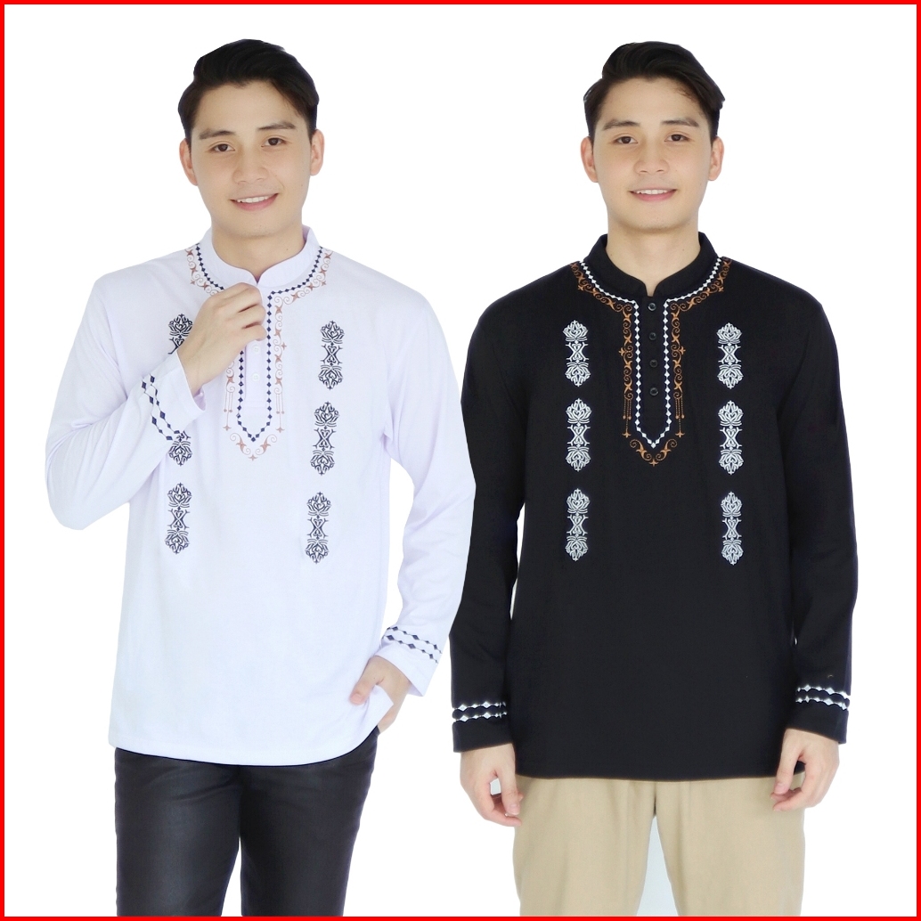 Kaospolos - Baju Kaos Koko Pria Muslim Kerah Shanghai Lengan Panjang Motif