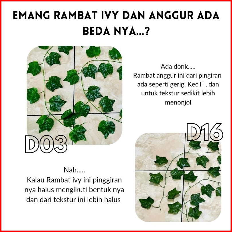 Daun Rambat 1 Lusin Daun Jalar Daun Rotan Anggur Sirih Semangka Ivy Mapple Dekorasi Artificial