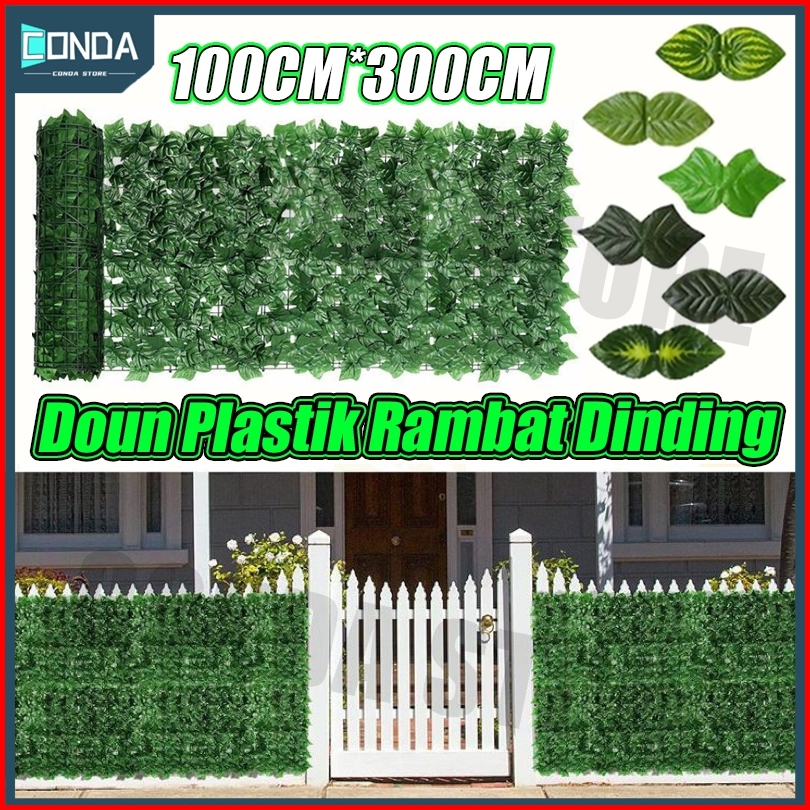 Plastik Dinding Rumput Buatan 1m 3m Daun Rambat Sintetis Daun Pagar Roll Artificial Hias Tanaman Hias Sintetis Daun Hias