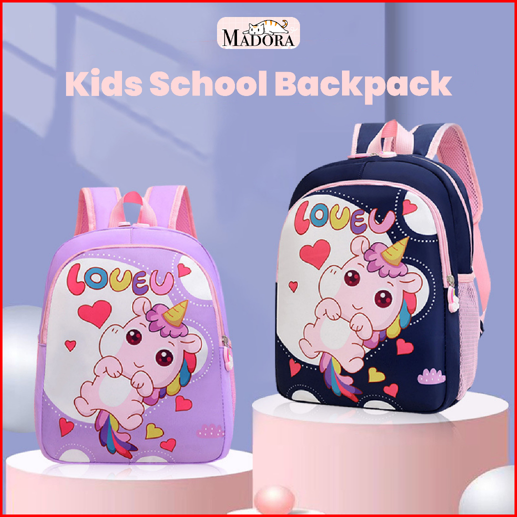 Madora Kids School Backpack Tas Ransel Sekolah Anak Karakter Kartun Unicorn Lucu Waterproof