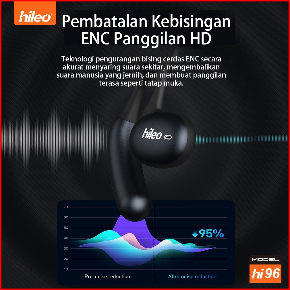 Hileohi96 Earphone Konduksi Tulang Nirkabel Wireless Tws Bluetooth V5.4 Nirkabel